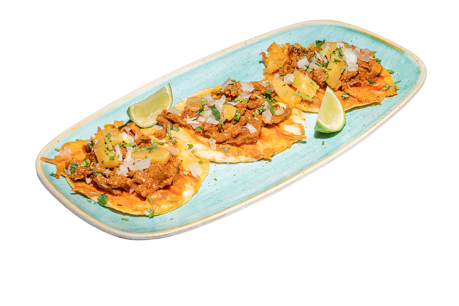 Taco Pastor Tacos Marinated pork strips with onion, pineapple and cilanmtro on corn tortilla ( 3 uds)